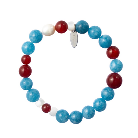 Blue Apatite, Red Agate, Pearl & Moonstone Harmony Bracelet
