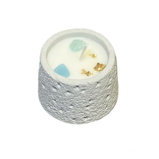 Throat Chakra White Musk Scented Aquamarine Crystal Candle