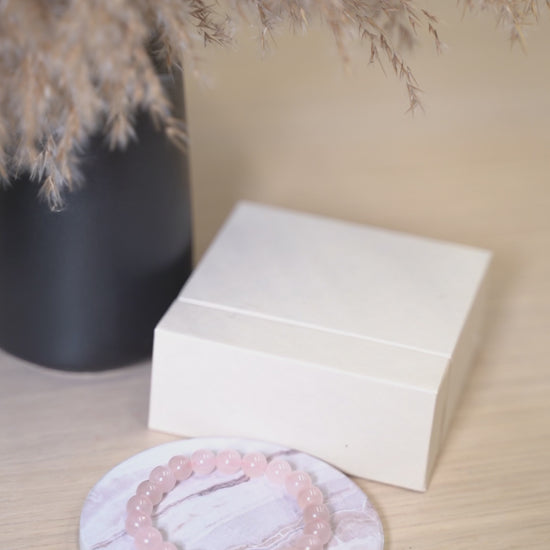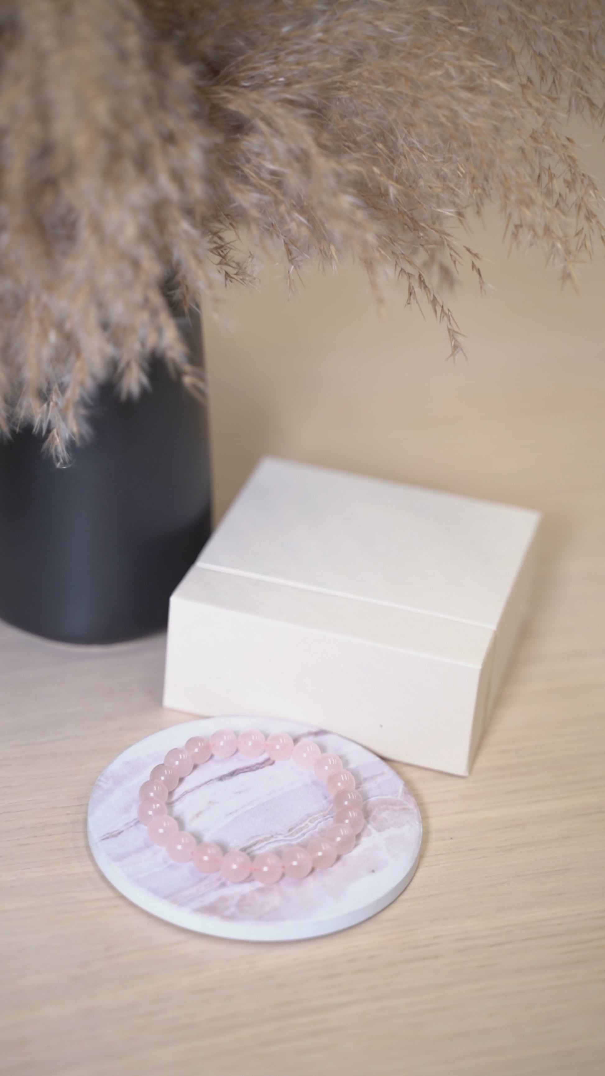 Crafted with authentic rose quartz beads, this bracelet radiates a soft pink color that symbolizes love and emotional healing. Known as the "Stone of Love,” rose quartz is cherished for promoting self-love, compassion, and harmony in relationships. Perfect for those seeking emotional balance, deeper connections, or heart healing, this crystal encourages inner peace and love.